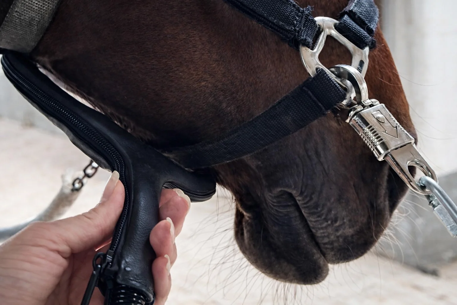 Die Anwendung erfolgt am besten mit einer kleinen Applikationsschlaufe im Bereich des Zungenbeins. Zu Beginn empfiehlt sich der „Turniermodus“ bzw. die niedrigste Intensitätsstufe zur Gewöhnung.